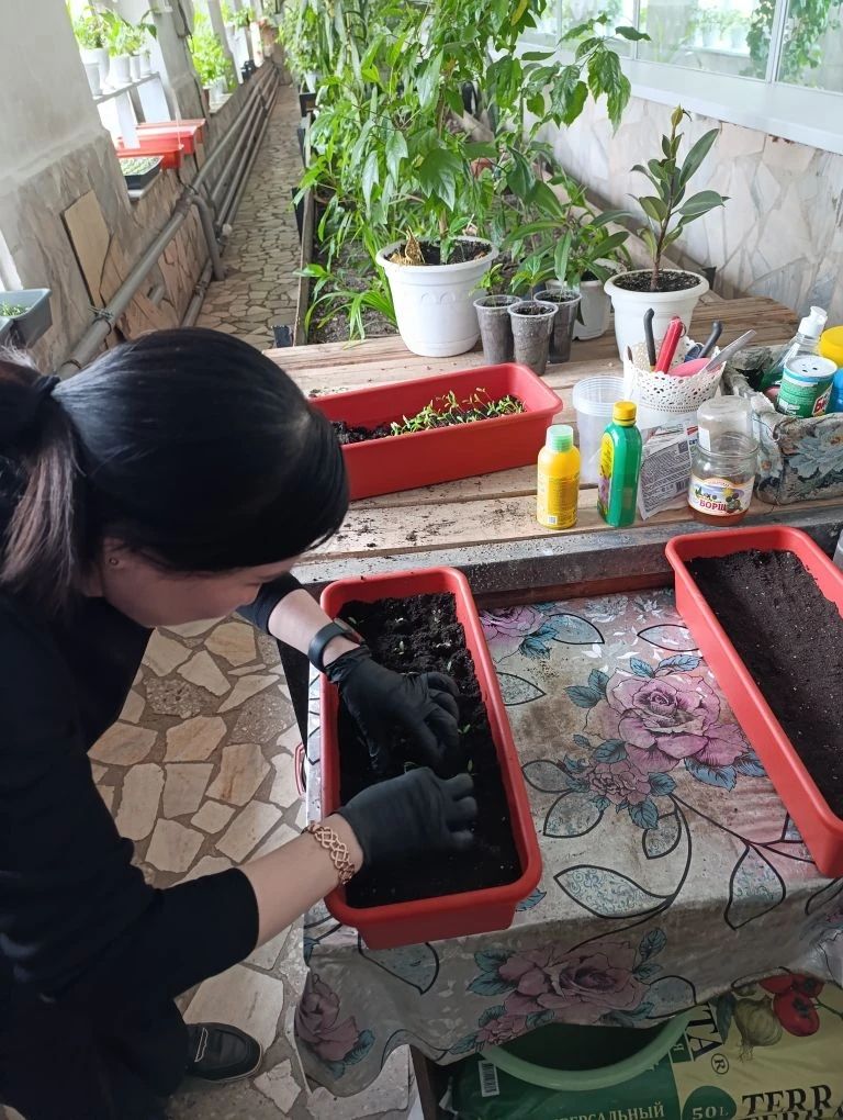 Наш заботливый и трудолюбивый инструктор Людмила нежно ухаживает за каждым росточком, словно за своим маленьким ребенком. Для нее каждый крохотный всход — это не просто растение, а маленькое чудо, которому она отдаёт всю свою любовь и заботу. Поливая, рыхля, гладя, она превращает эти нежные саженцы в яркое и пышное цветочное великолепие, которое украсит территорию, наполнит воздух ароматами и создаст атмосферу радости и обновления.