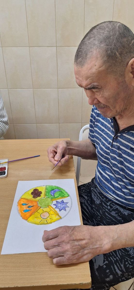 Темой первого занятия стала «Звезда чувств». В рамках занятия жители через творчество и художественные техники раскрывали и выражали свои эмоциональные переживания, что способствовало улучшению эмоционального состояния, развитию самоосознания и укреплению психологического здоровья.