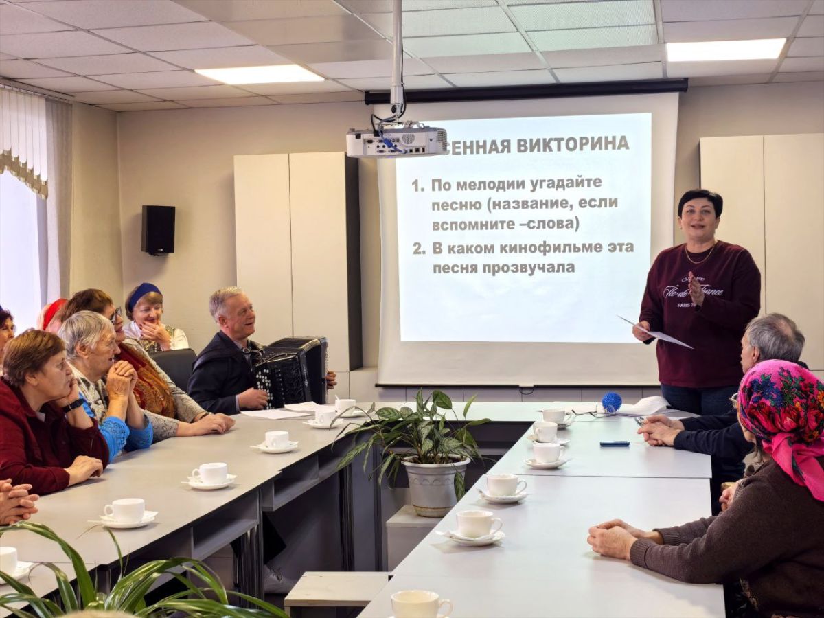 Мероприятие прошло в атмосфере тепла и дружбы — участники с радостью участвовали в музыкальной викторине: угадывали мелодии и фильмы, где звучали любимые песни, — словно возвращались в красивые моменты своих воспоминаний. Все пели дружно, пританцовывали и делились искренним смехом, создавая атмосферу радости и единства.