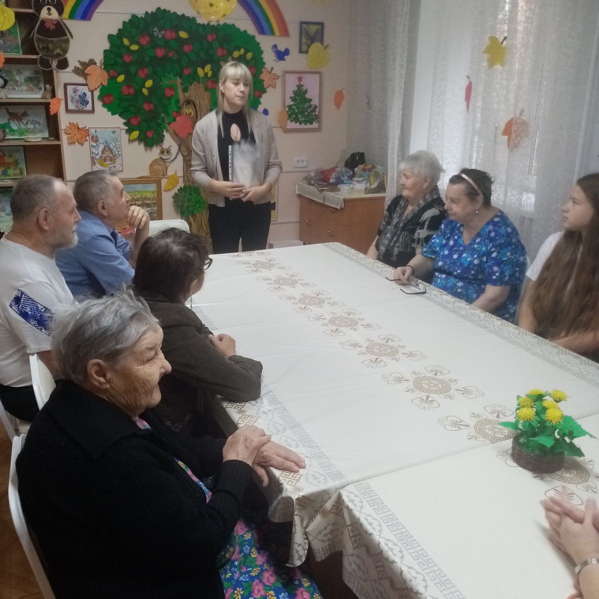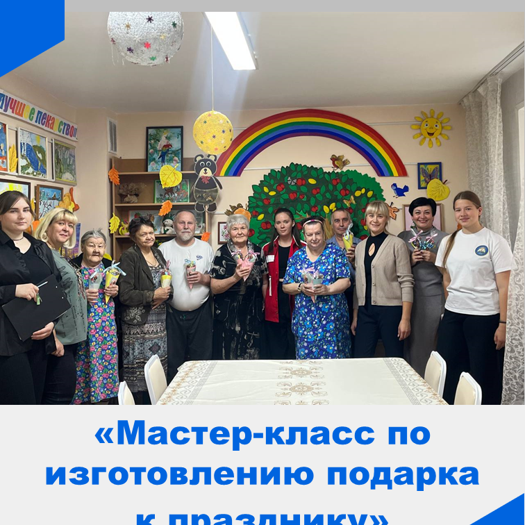 На память сделали общее фото о проведенном интересном занятии. Жители остались довольны вниманием ребят, заботой и, конечно же, подарками, сделанными своими руками!
