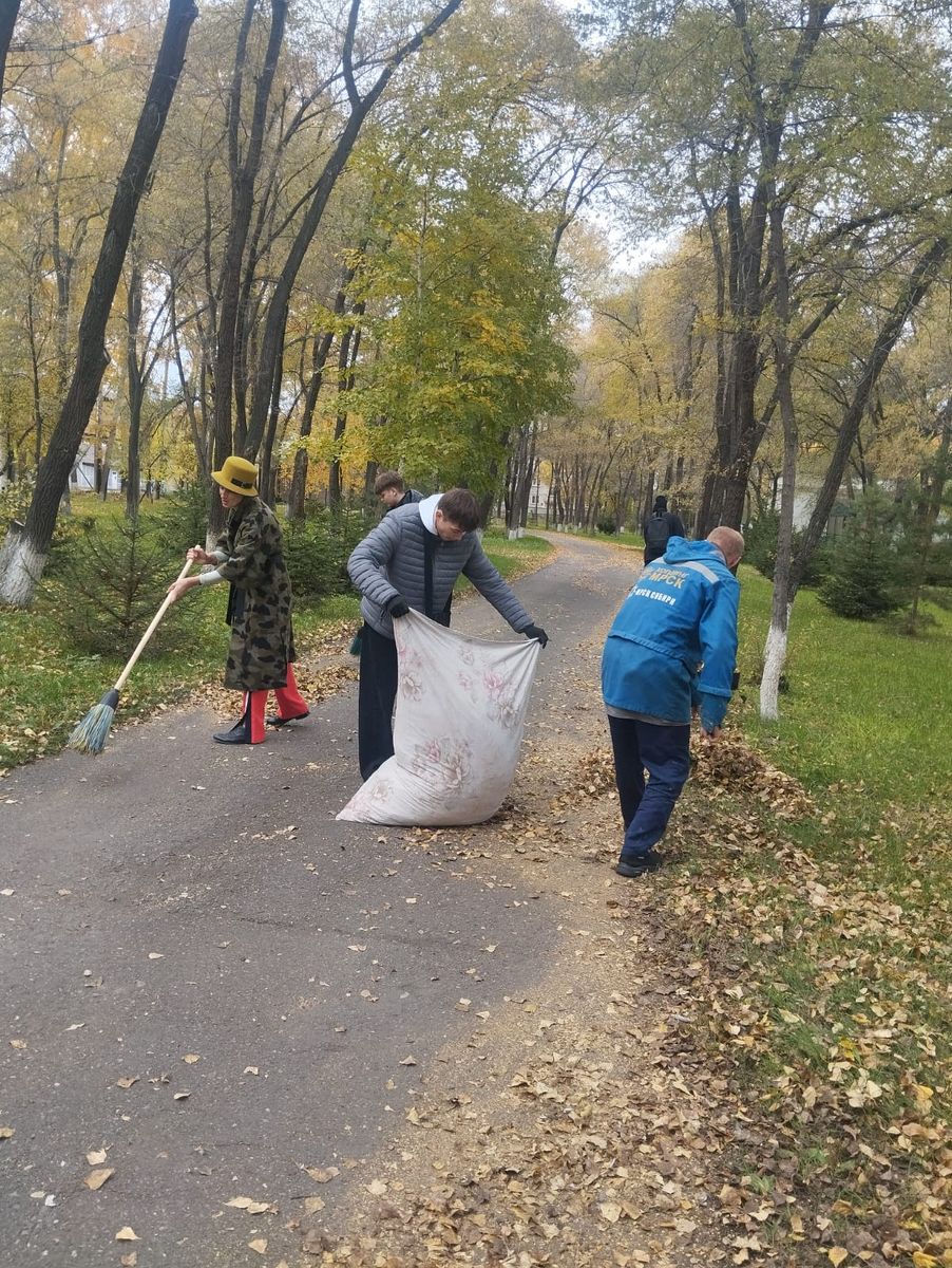 С деревьев опадает листва и это значит пришло время уборки территории. С большим желанием вызвались нам помочь учащиеся СОШ № 23 и Лицея им. Н. Г. Булакина.