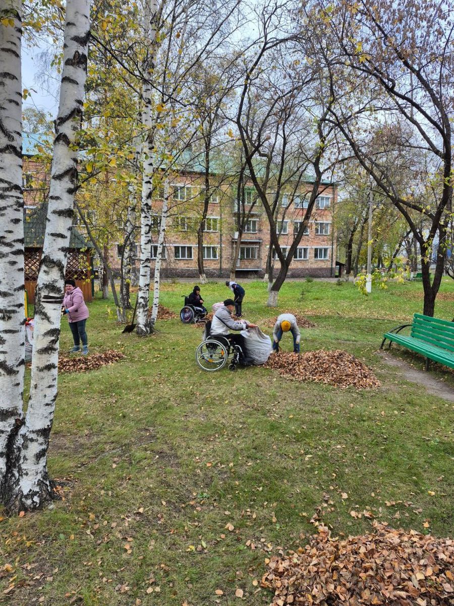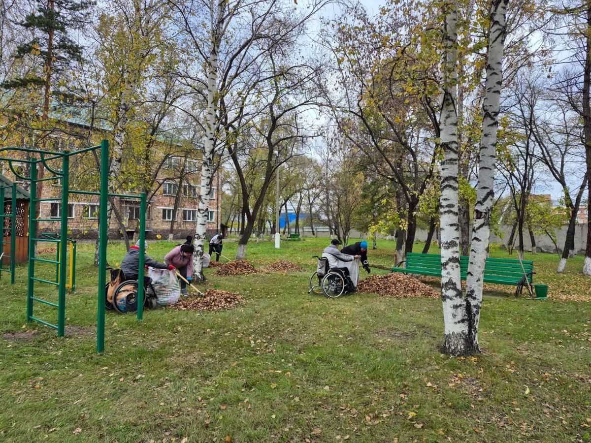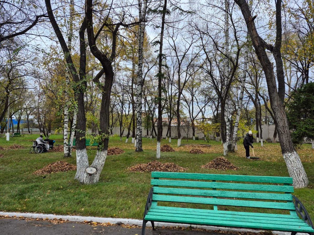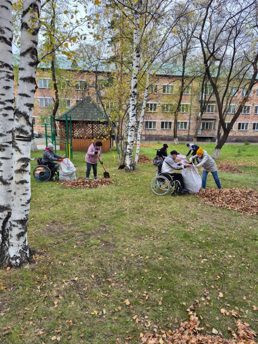 Осенняя уборка территории в пансионате ветеранов