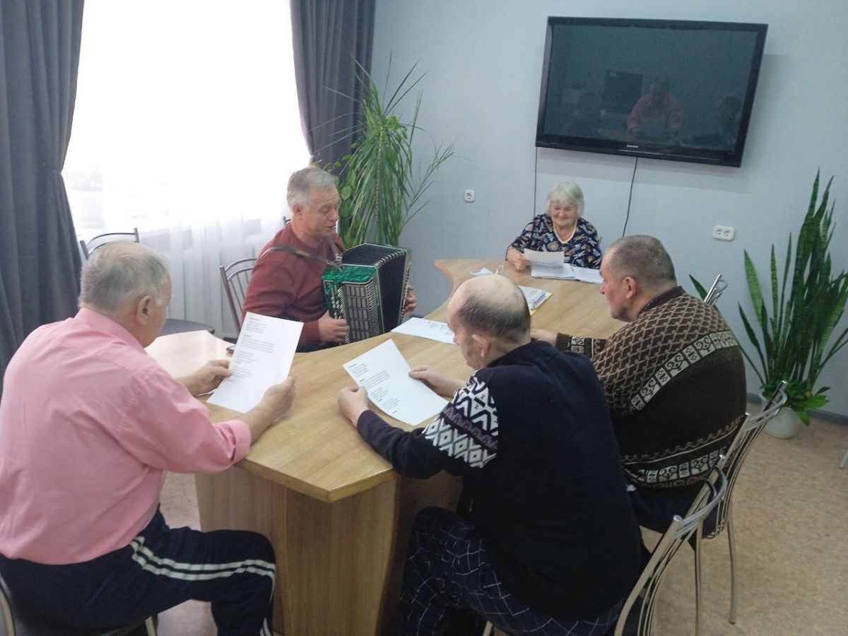 Особое место занимает наш вокальный кружок, руководителем которого является музыкальный руководитель Горохов В.Н. Он занимается с жителями разучиванием песен, вместе они исполняют любимые композиции, чтобы петь для себя, для души и просто ради удовольствия. Такие занятия наполняют сердца радостью, дарят возможность выразить свои чувства и создают теплую, дружескую атмосферу внутри нашего учреждения.