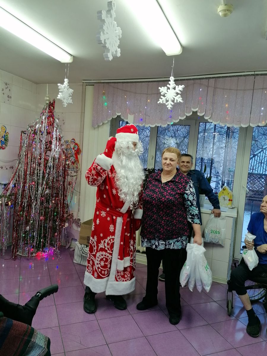 13 января 2026 В предверии праздника в последний день декабря уходящего года и встрече Нового 2026 года в пансионате ветеранов состоялось теплое и радостное мероприятие — вручение новогодних подарков от Деда Мороза и Снегурочки. В духе зимней сказки к пожилым людям прибыл задорный Дед Мороз и с мешком, полным подарков, а Снегурочка сопровождала его, радуя всех улыбками и добрыми словами.