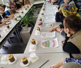 Мероприятие завершилось угощением — пасхальным куличом, сладостями и горячим чаем, что создало атмосферу уюта и радости.