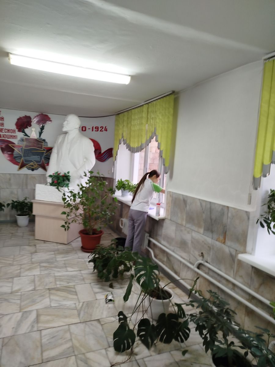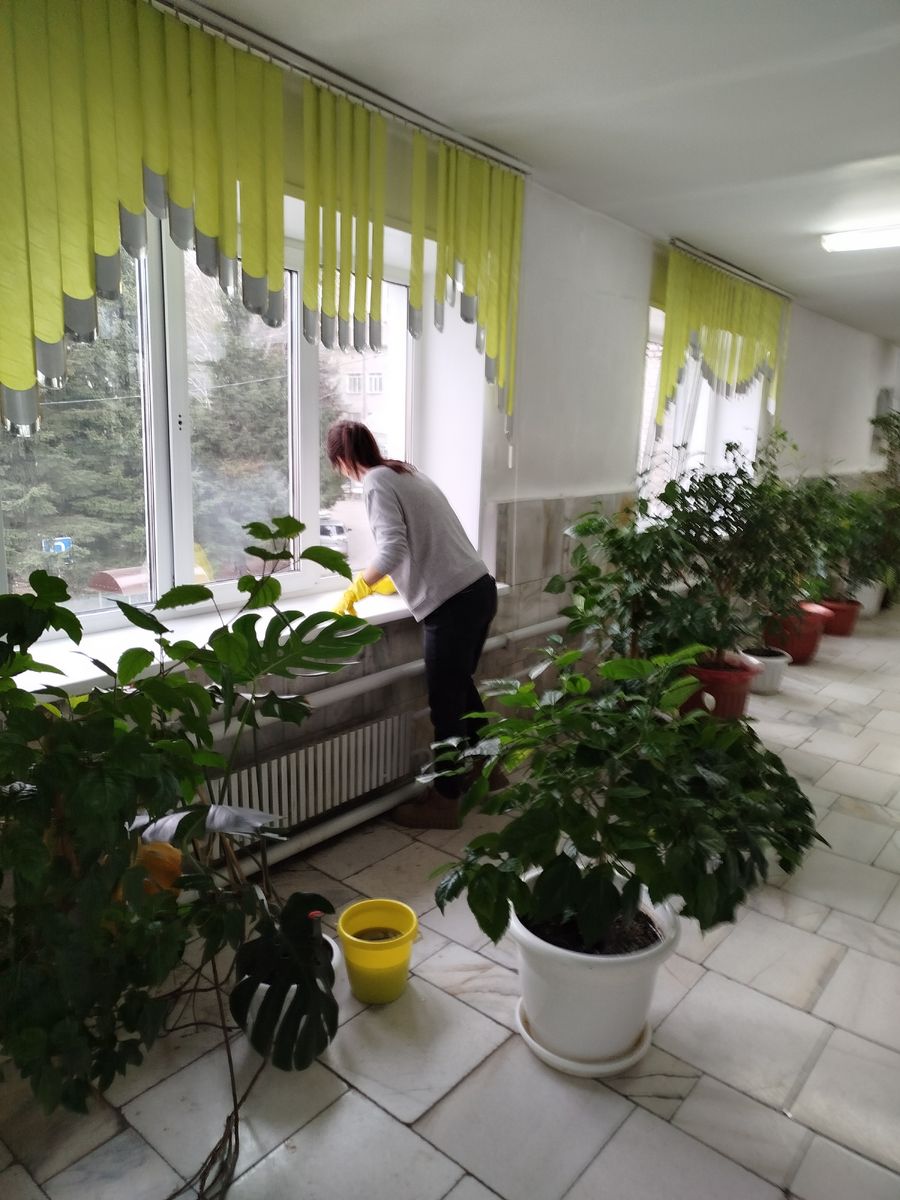 Погода в этот день была очень благоприятной: солнечно и тепло, что позволило нам не только заниматься внутренней уборкой, но и помыть окна с уличной стороны. Это добавило света и свежести в наши помещения, создав более светлую и приятную атмосферу для всех сотрудников.