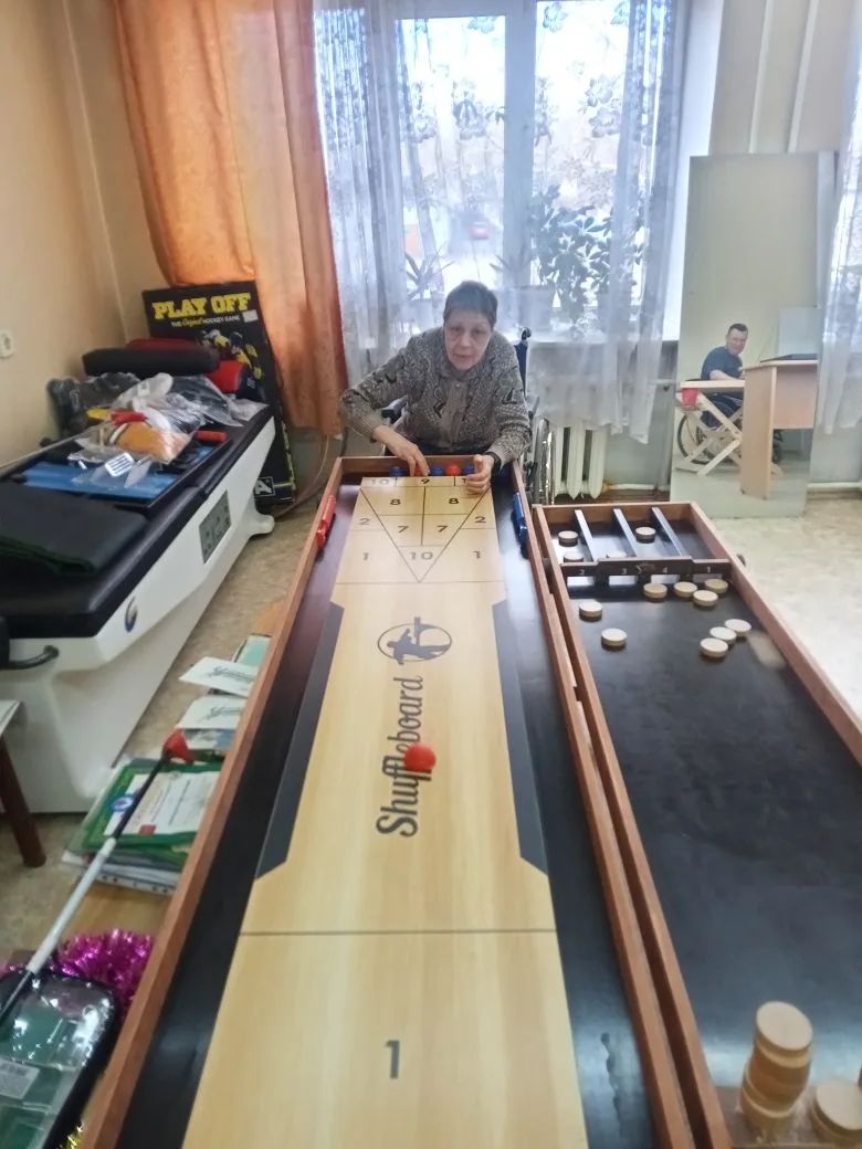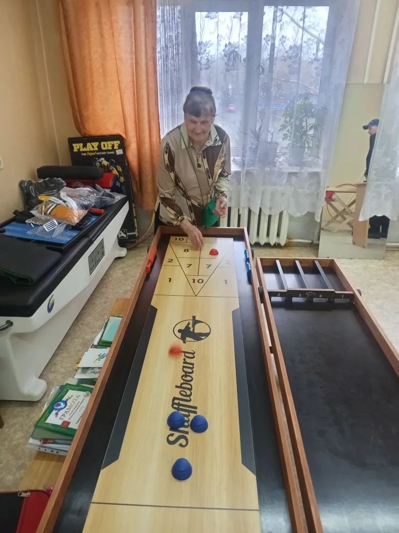 09 апреля 2026 В нашем учреждении жители пансионата с удовольствием проводят время за настольными играми: это и шафлборд, и джоколло, и другие увлекательные игры. Такие занятия не только развивают умственные способности и ловкость, но и помогают общаться, делясь радостью и хорошим настроением.