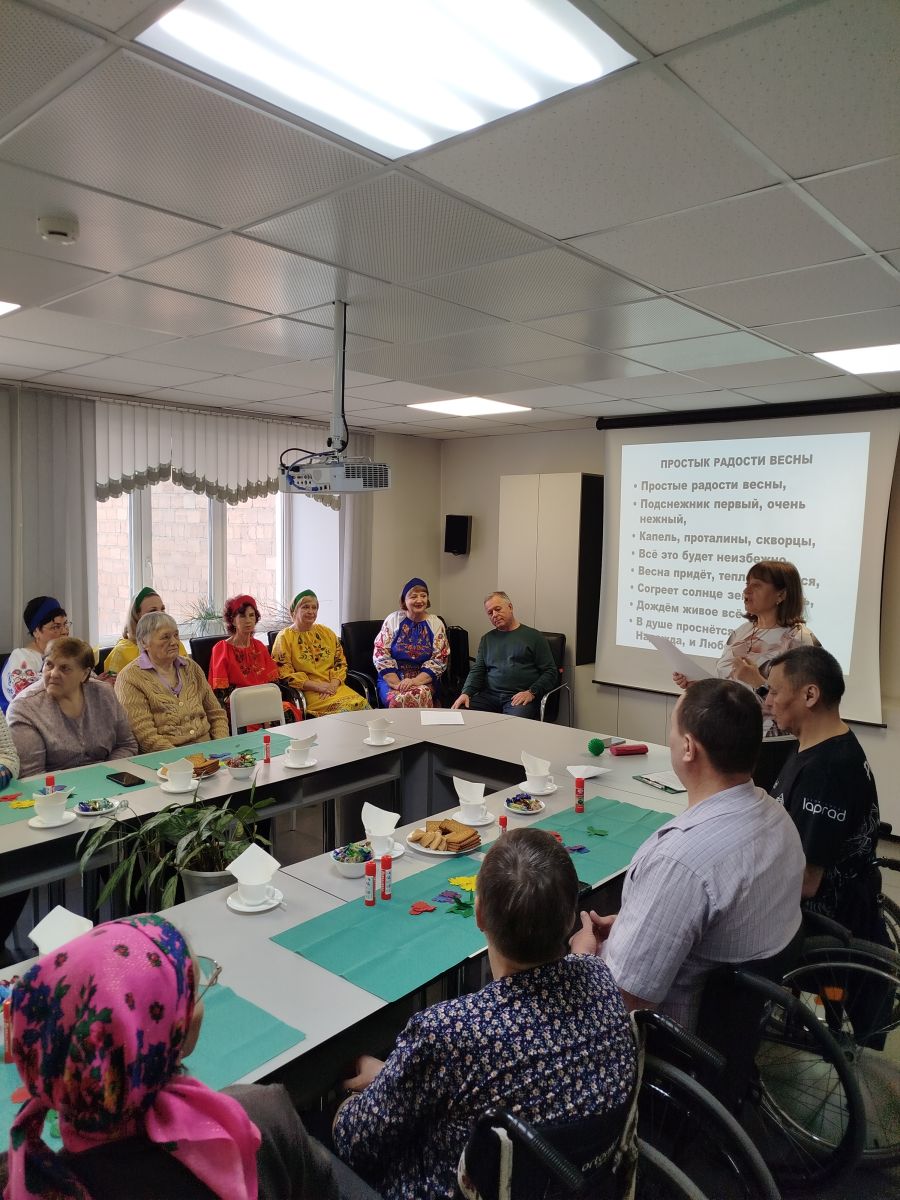Мы отправились в увлекательное путешествие по простым, но таким важным весенним радостям. Ведущая, организатор и психолог М.А. Бондаренко, словно добрый весенний лучик, зажгла солнечное настроение с помощью красочных слайдов, а культорганизатор Т.А.Унтерберг развлекла весёлой викториной, которая заставила всех вспомнить, как прекрасно пробуждение природы и первые ласковые лучи солнца.