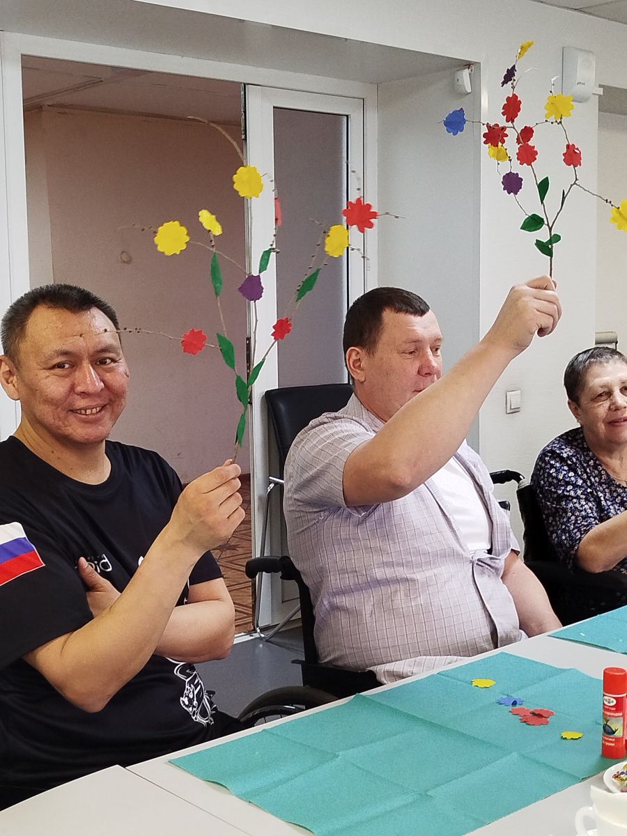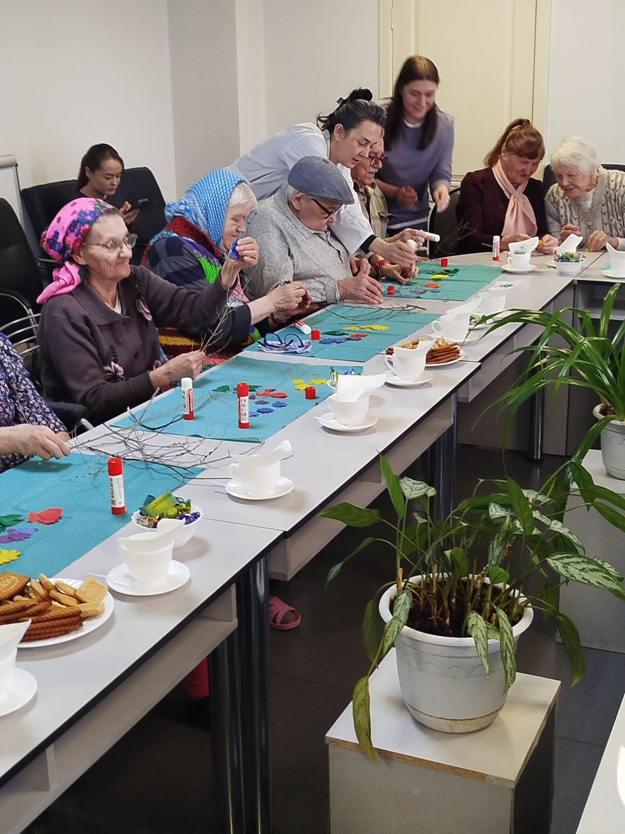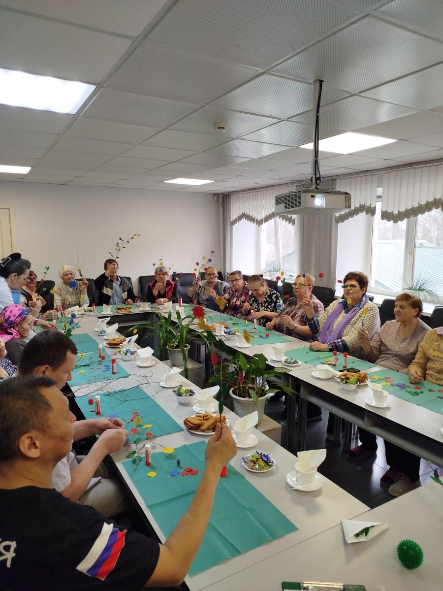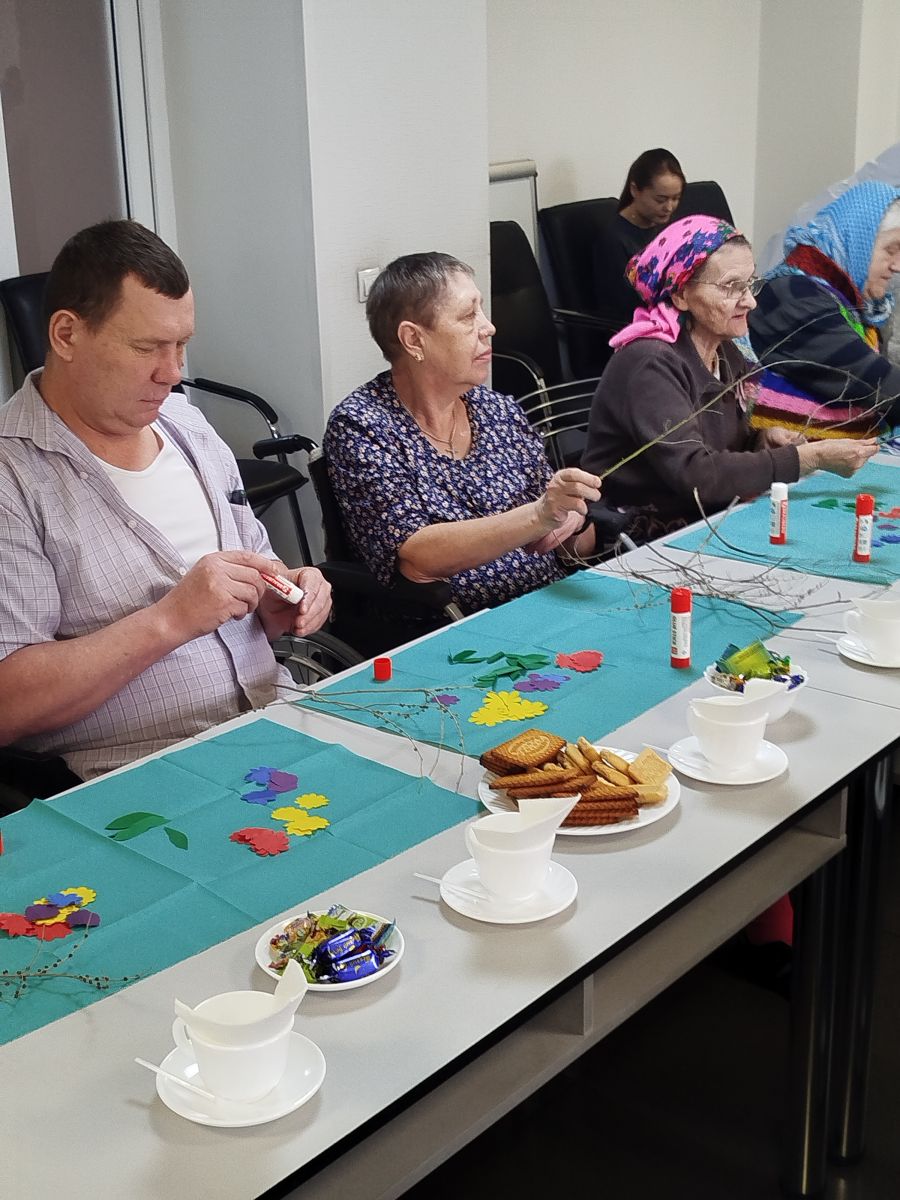 А в уголке творчества инструкторы по труду Ю.О. Майер и Л.В. Чистобаева раскрыли секрет весенней красоты: мастер-класс «Весенняя веточка» увлёк всех присутствующих в увлекательный процесс создания ярких цветочных украшений. С нежной заботой и улыбками жители украшали веточки, словно помогая природе проснуться и ожить.