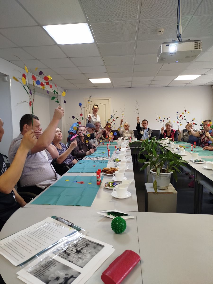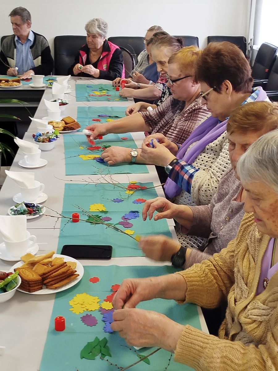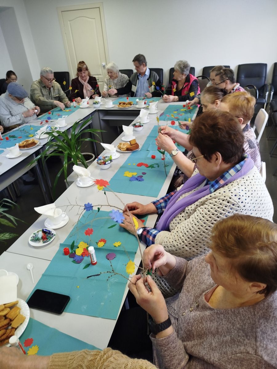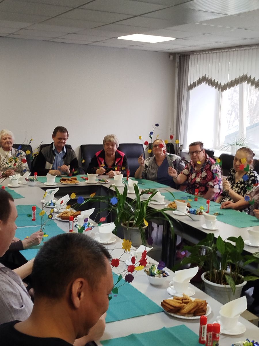 А в уголке творчества инструкторы по труду Ю.О. Майер и Л.В. Чистобаева раскрыли секрет весенней красоты: мастер-класс «Весенняя веточка» увлёк всех присутствующих в увлекательный процесс создания ярких цветочных украшений. С нежной заботой и улыбками жители украшали веточки, словно помогая природе проснуться и ожить.