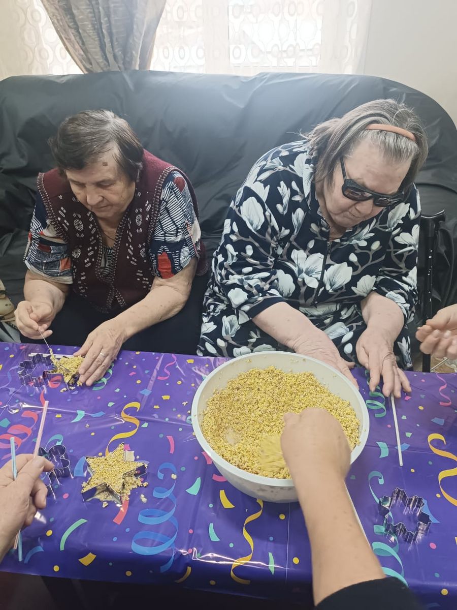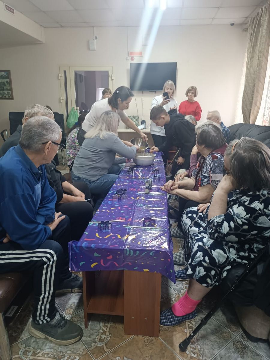 24 ноября 2025 Вновь в гостях Саяногорского геронтологического отделения побывали детки из детского дома «Ласточка» и представительницы мира металлургии Наталья Мальцева и Татьяна Соломонова. С их помощью жители пансионата изготавливали необычные подвесные кормушки для птиц. Время пролетело незаметно, в хорошей дружественной обстановке, с шутками и смехом.Кормушки сразу же развесили, все остались довольные, что сделали хоть и небольшое, но доброе, хорошее и нужное дело.