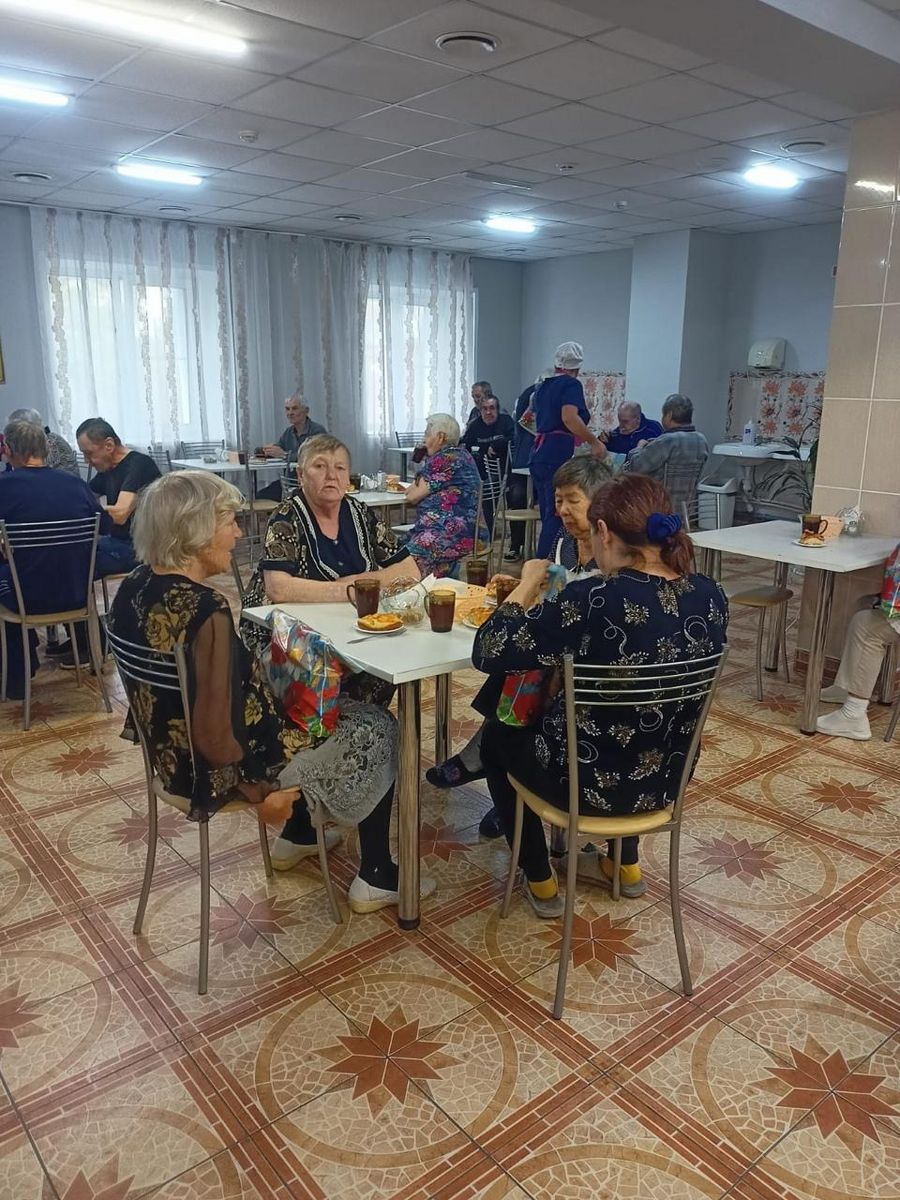 02 октября 2024 Вчера в Саяногорском геронтологическом отделении прошло чаепитие в честь Дня пожилого человека. Порадовали наших жителей песнями, шутками, танцами, стихами и интеллектуальным марафоном от ведущей представители Общества Милосердия города Саяногорска. Девочки -повара испекли сладкий пирог и вручили подарки от Абаканского пансионата ветеранов.