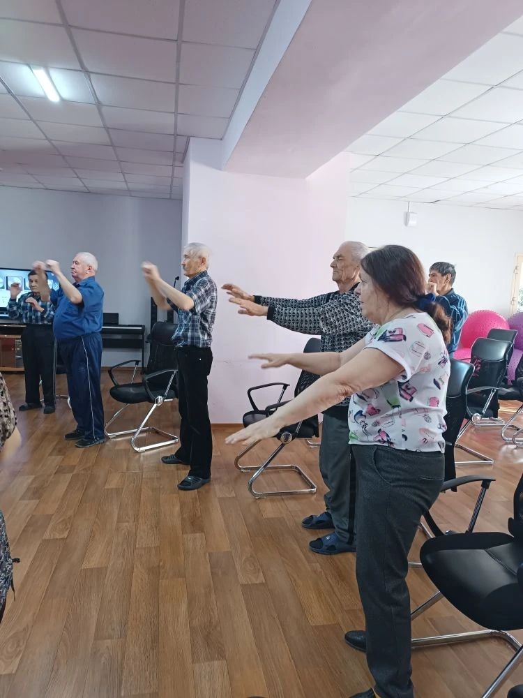 30 марта 2026 Каждое утро в актовом зале Саяногорского геронтологического отделения проходит оздоровительная гимнастика. Вместе с инструктором по физической культуре Герасимовой Любовью Алексеевной жители осваивают различные физические упражнения и сидя на стульях, и стоя, и в движении. После такой небольшой, но очень нужной физической нагрузки, всем желающим предлагается витаминный напиток или кислородный коктейль.