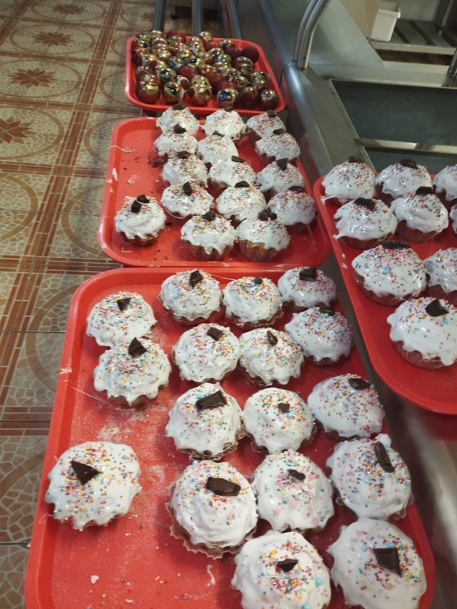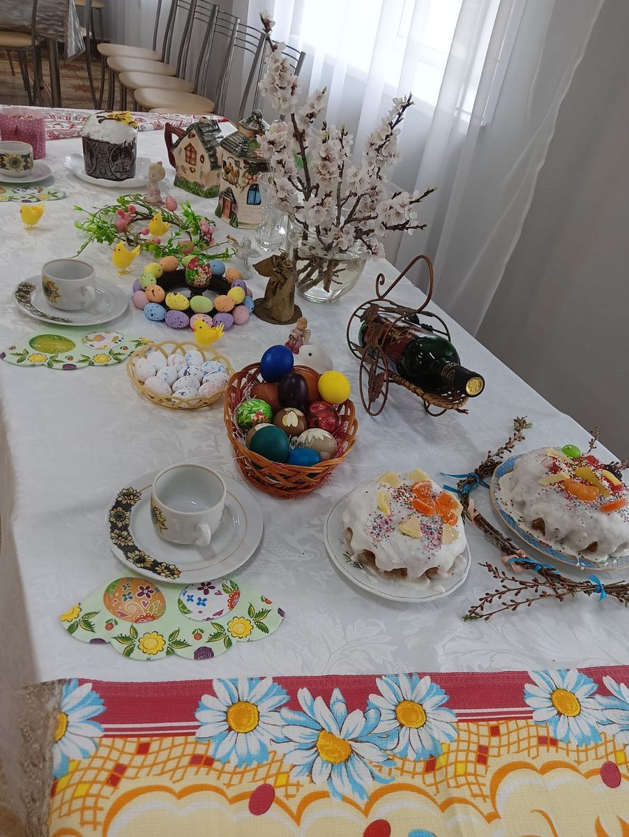 21 апреля 2025 На праздник Светлой Пасхи нас уже который год радуют наши поставщики в лице руководителя ООО «Мицар» Миллера Владимира Карловича, которые дарят каждому жителю пансионата и каждому сотруднику отделения по пасхальному куличу. Девочки с пищеблока накрыли красивые пасхальные столы.